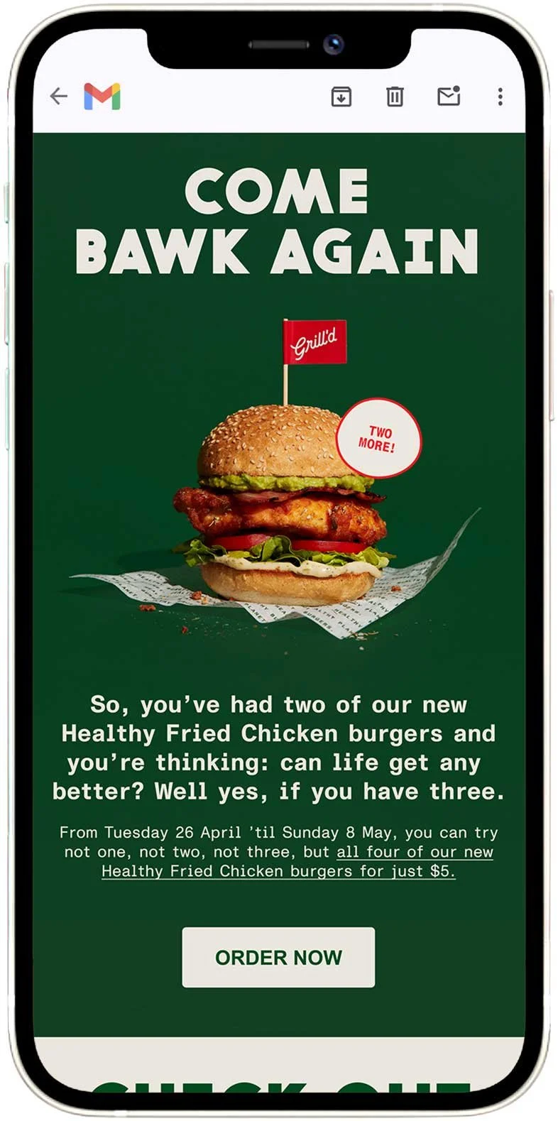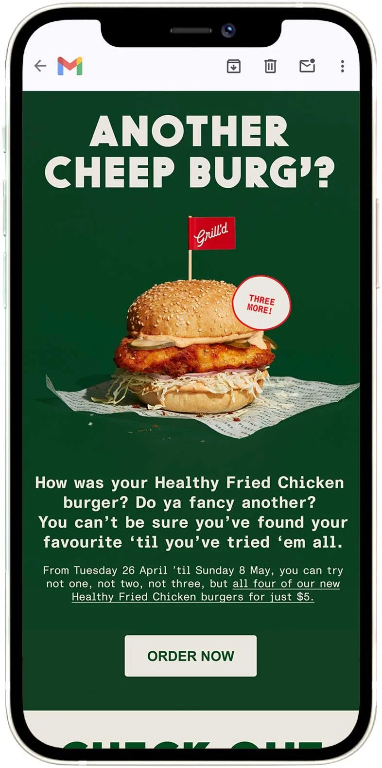 The Thinking: Grill’d had a new recipe for their Healthy Fried Chicken (HFC) Burgers, and the chicken within the burgers was crunchier, juicier, and tastier than before. But unfortunately, there wasn’t much budget to launch them. So the team and I at Grill’d used one simple — and free — linguistic technique to hold the campaign’s many elements together.