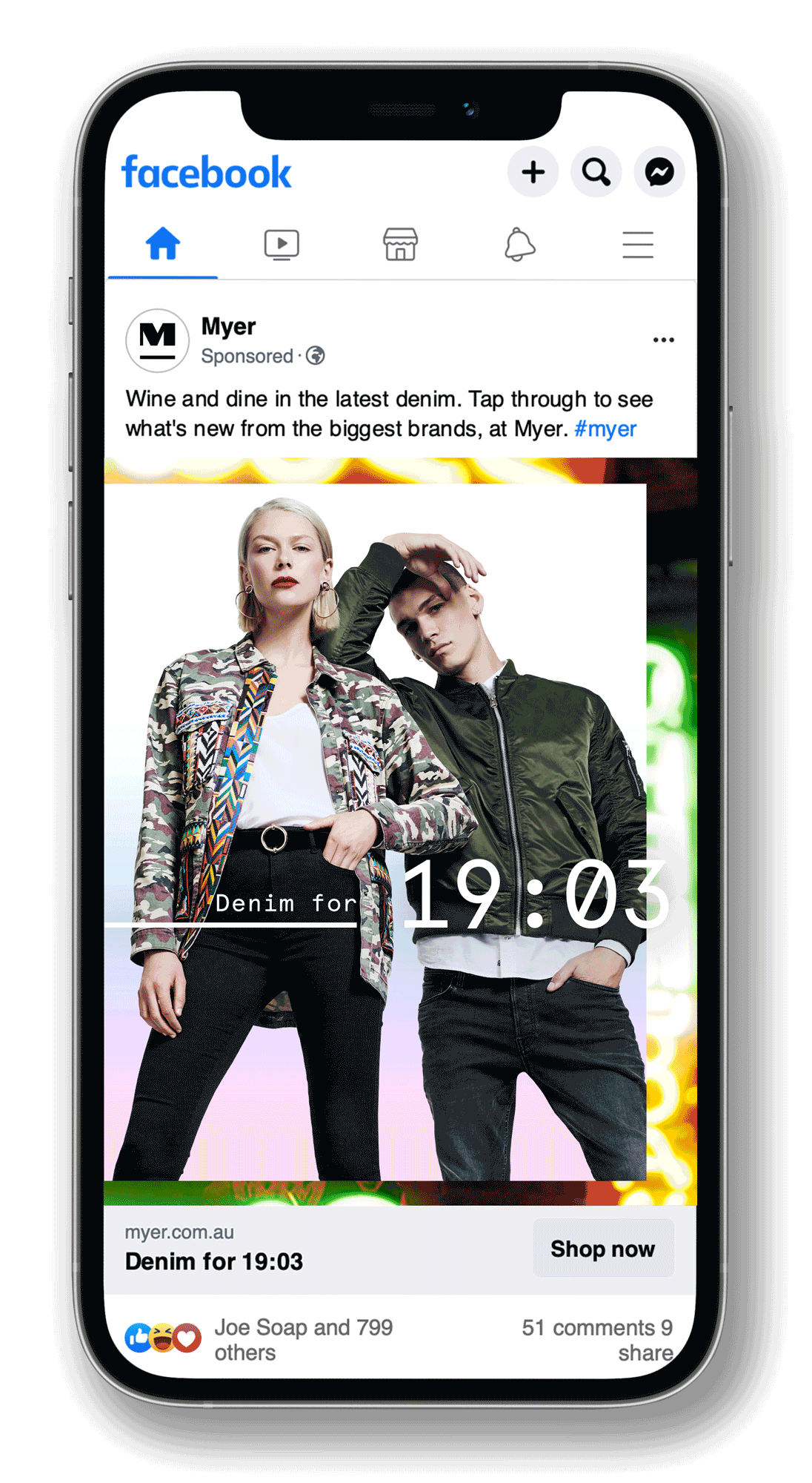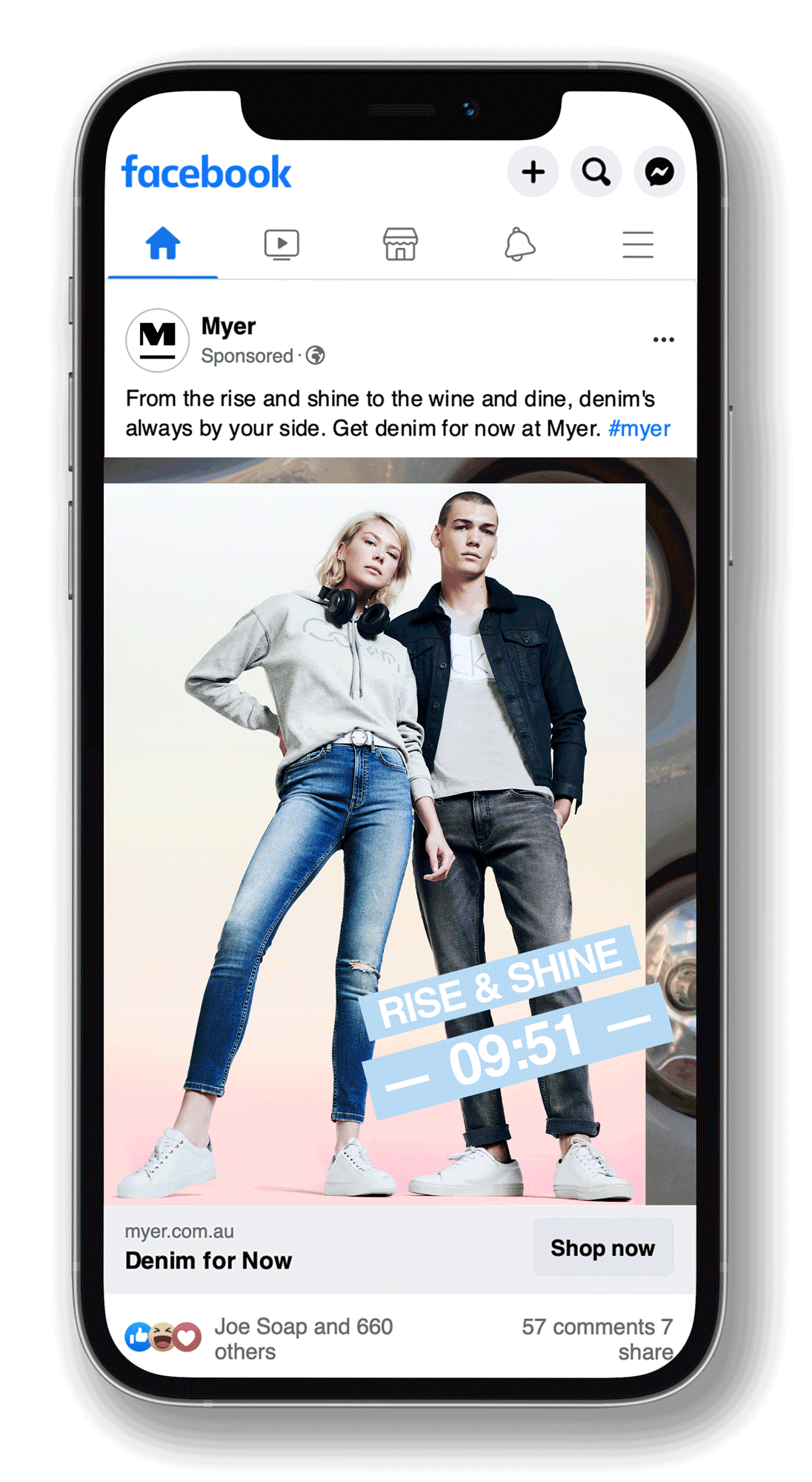 A dynamic, contextually-aware campaign that proved Myer had denim for any time of day, and delivered a category sales lift of 27%.