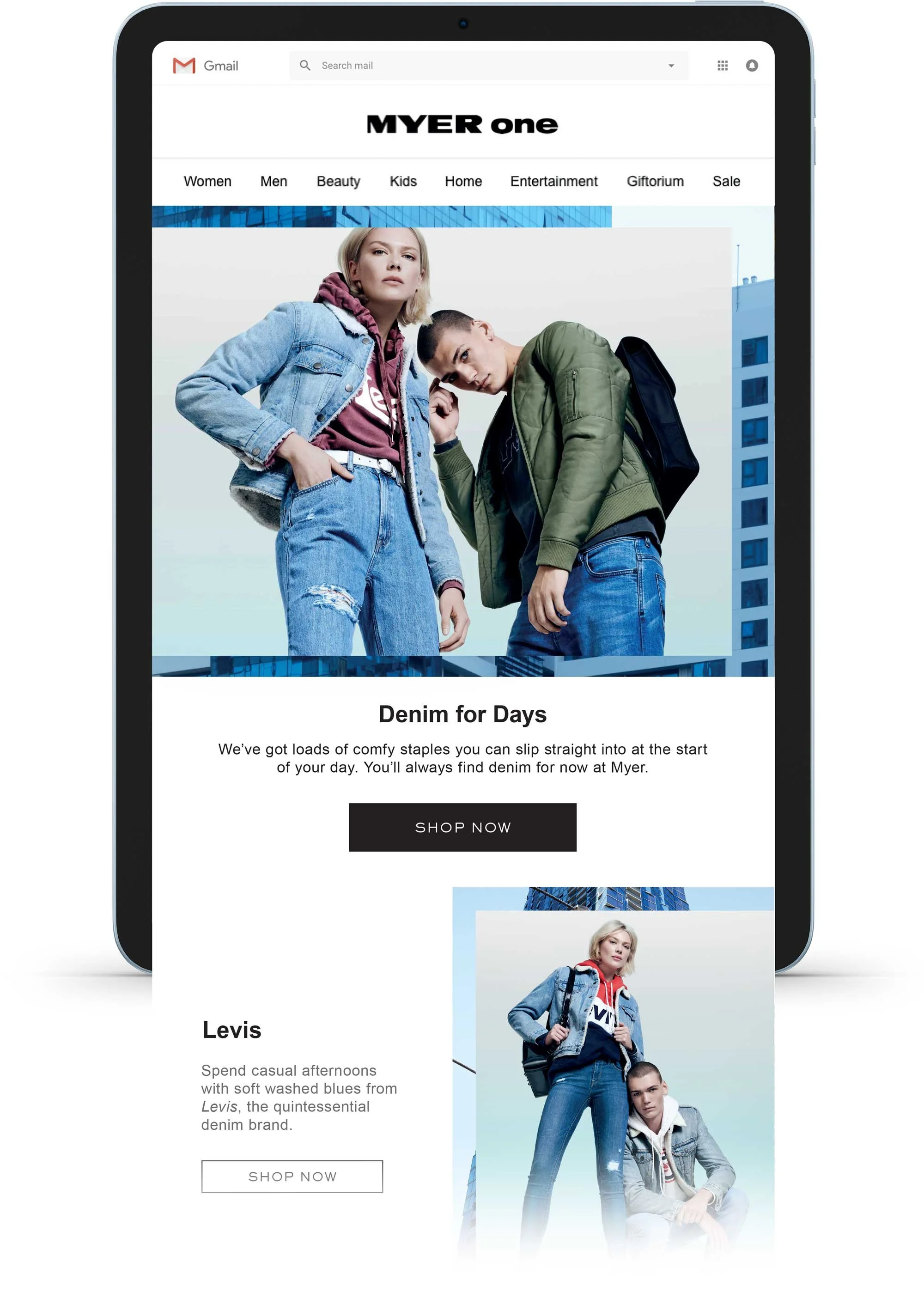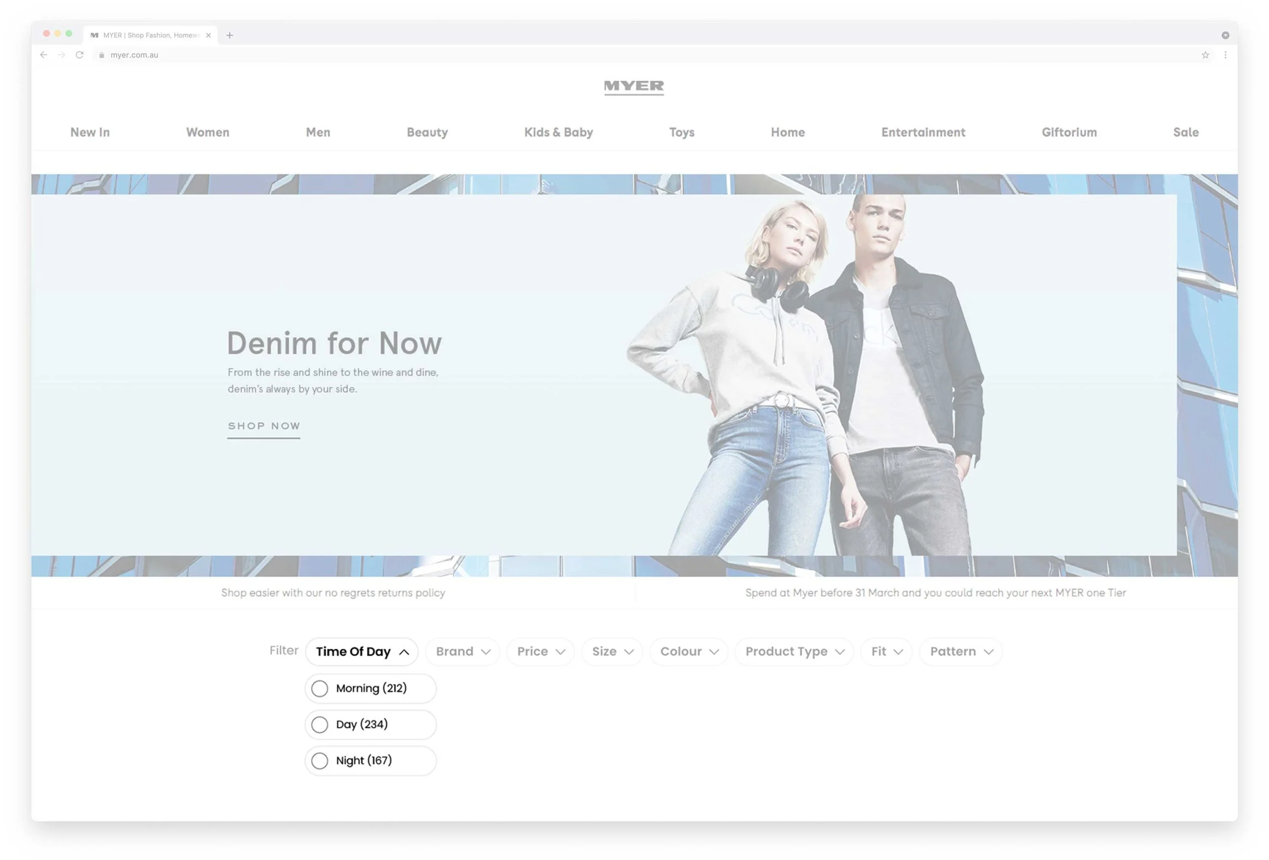 A custom product filter for the Myer online store meant customers could shop denim products based on the time of day they’d be worn.