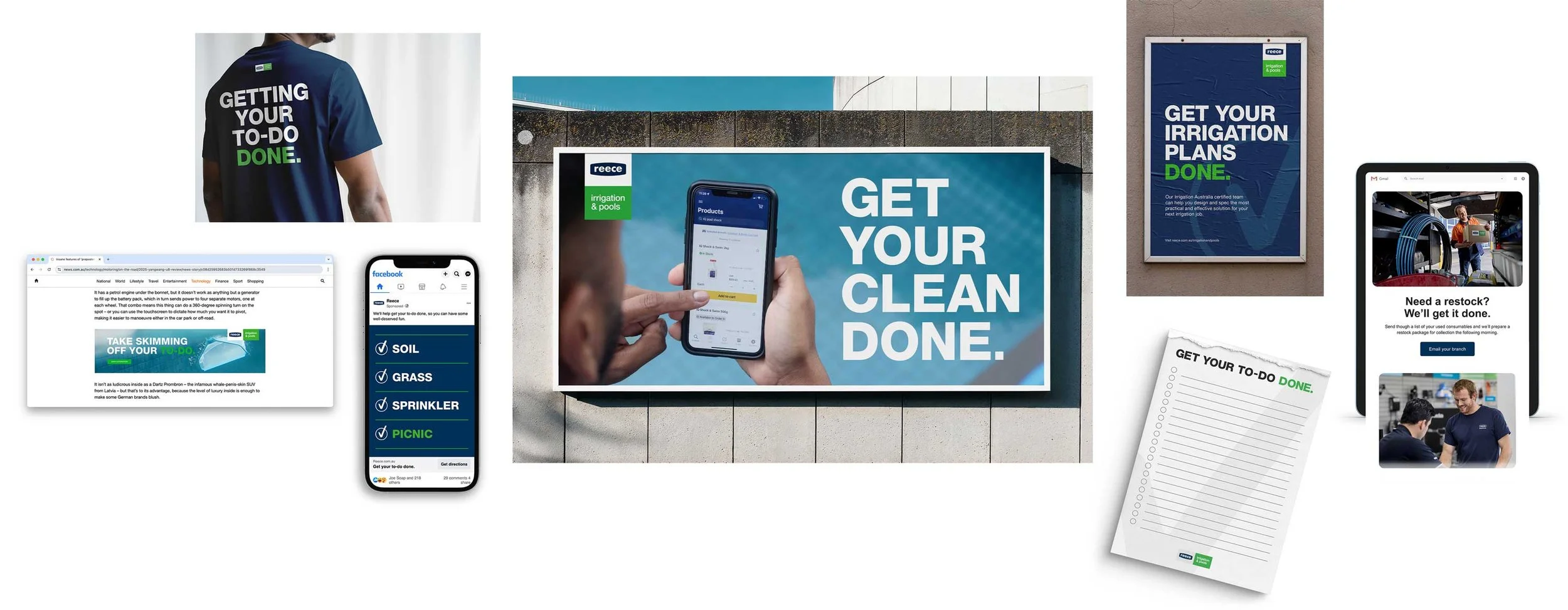 The campaign platform was built around Reece Irrigation & Pools’ benefit: its ability to help customers get their to-do done. A simple message, sure, but one that provided vast executional flexibility across a sprawling communication ecosystem.