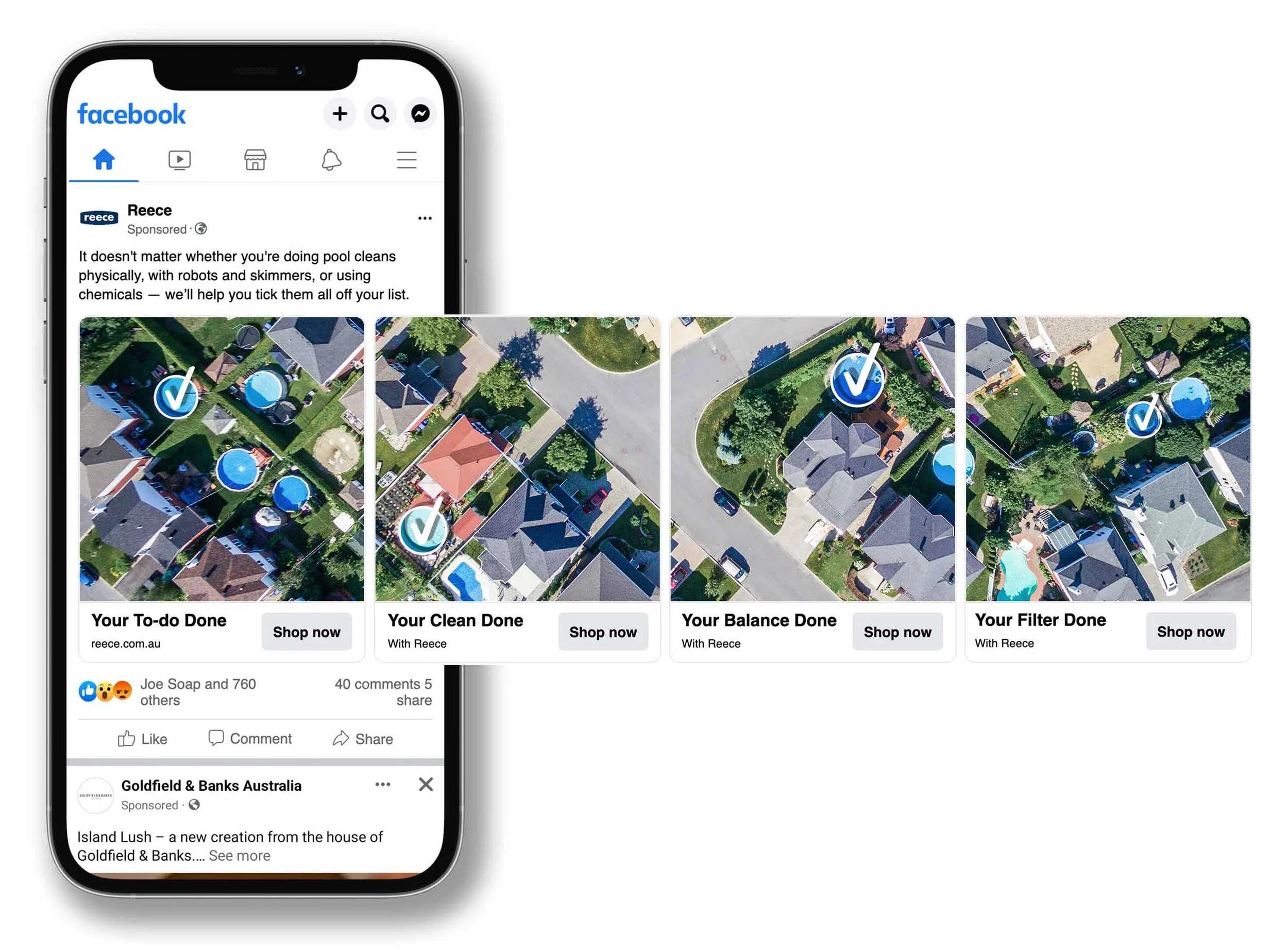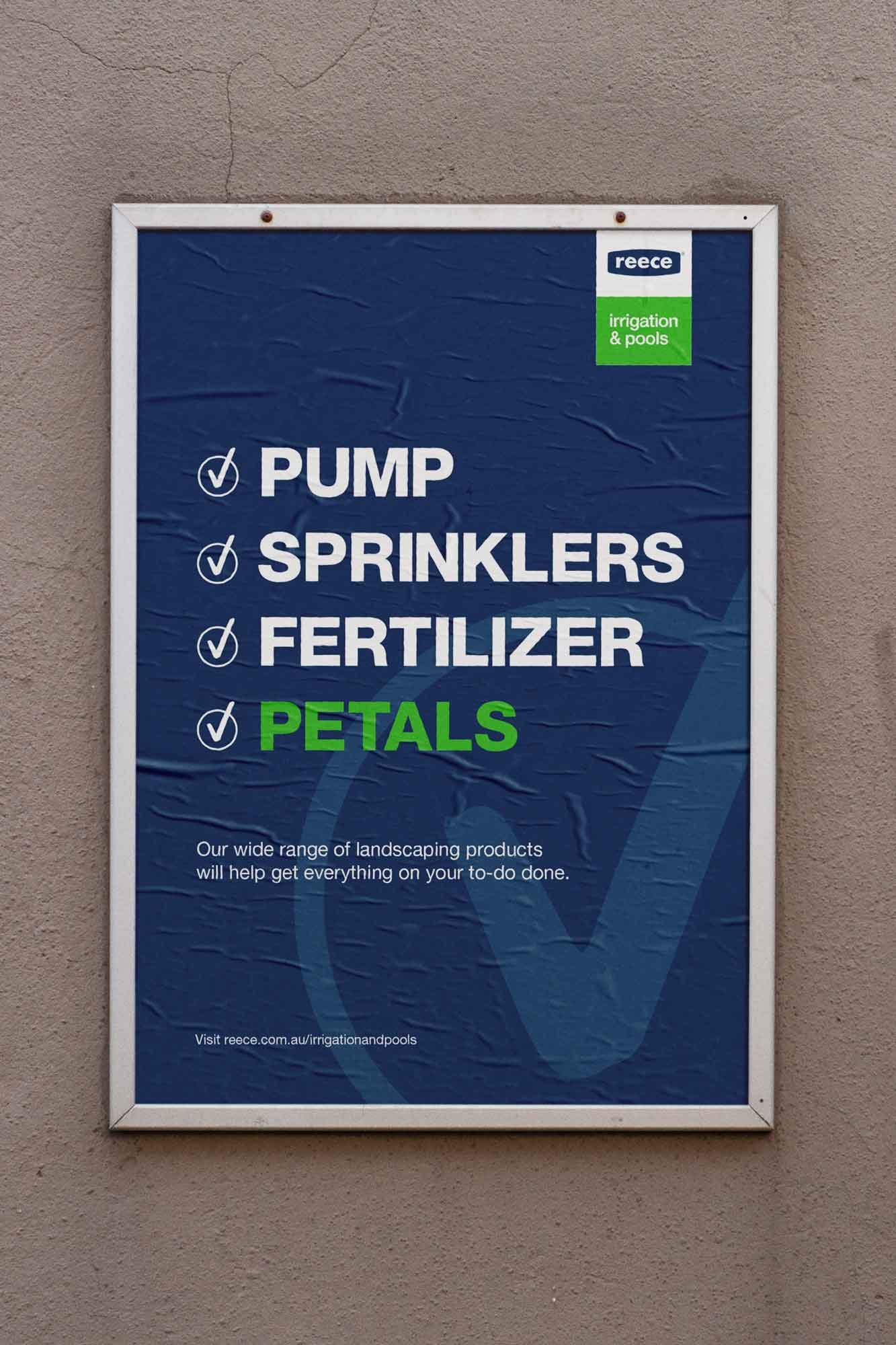The campaign platform's core strength was its elasticity — the same idea that ran on a billboard (below) could be adapted for a social story, an EDM, or an in-branch sign. For a business with Reece Irrigation & Pools' customer, product, and channel diversity, that meant genuine creative and production efficiency, and a brand presence that felt coherent for the first time.