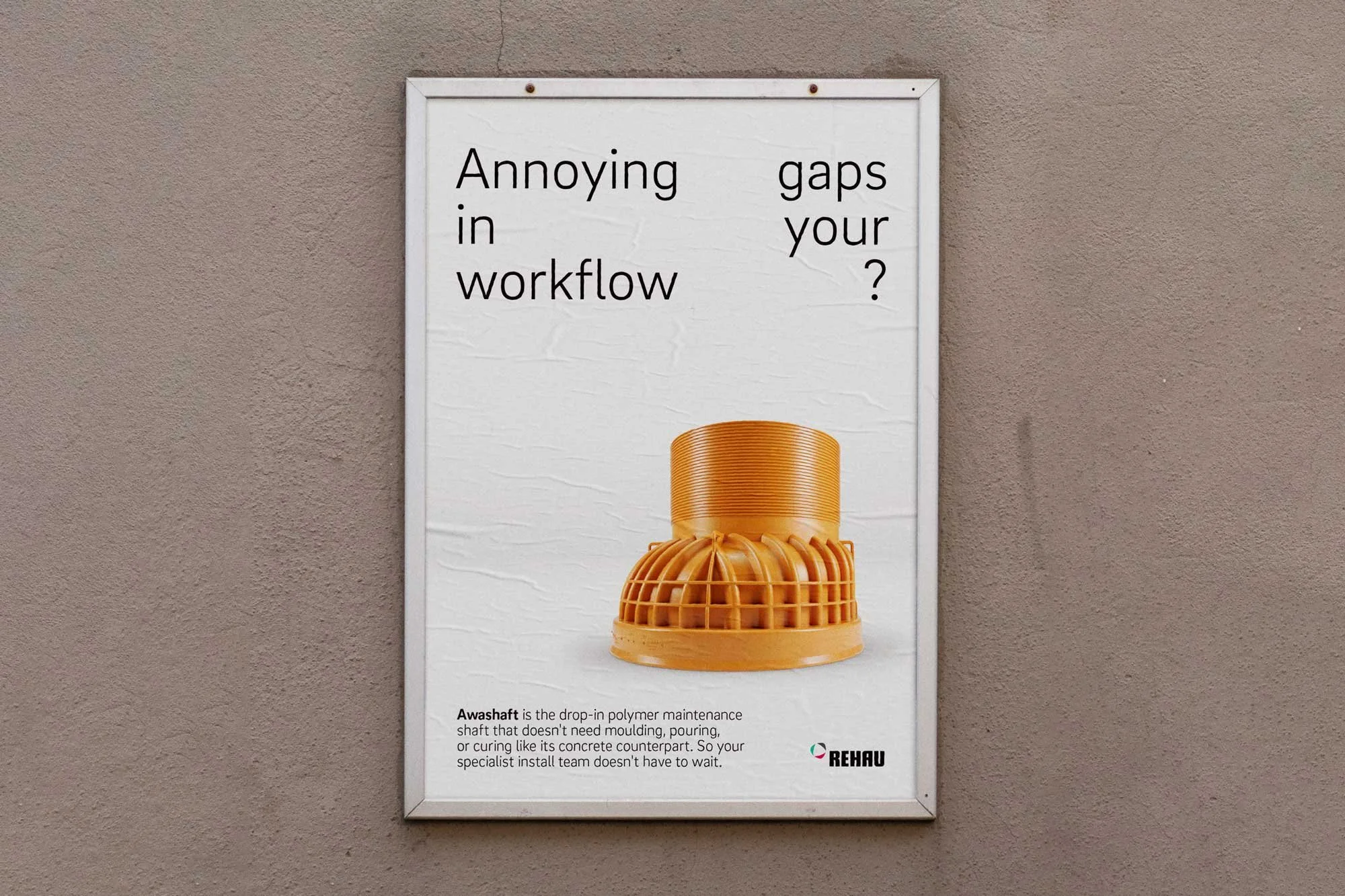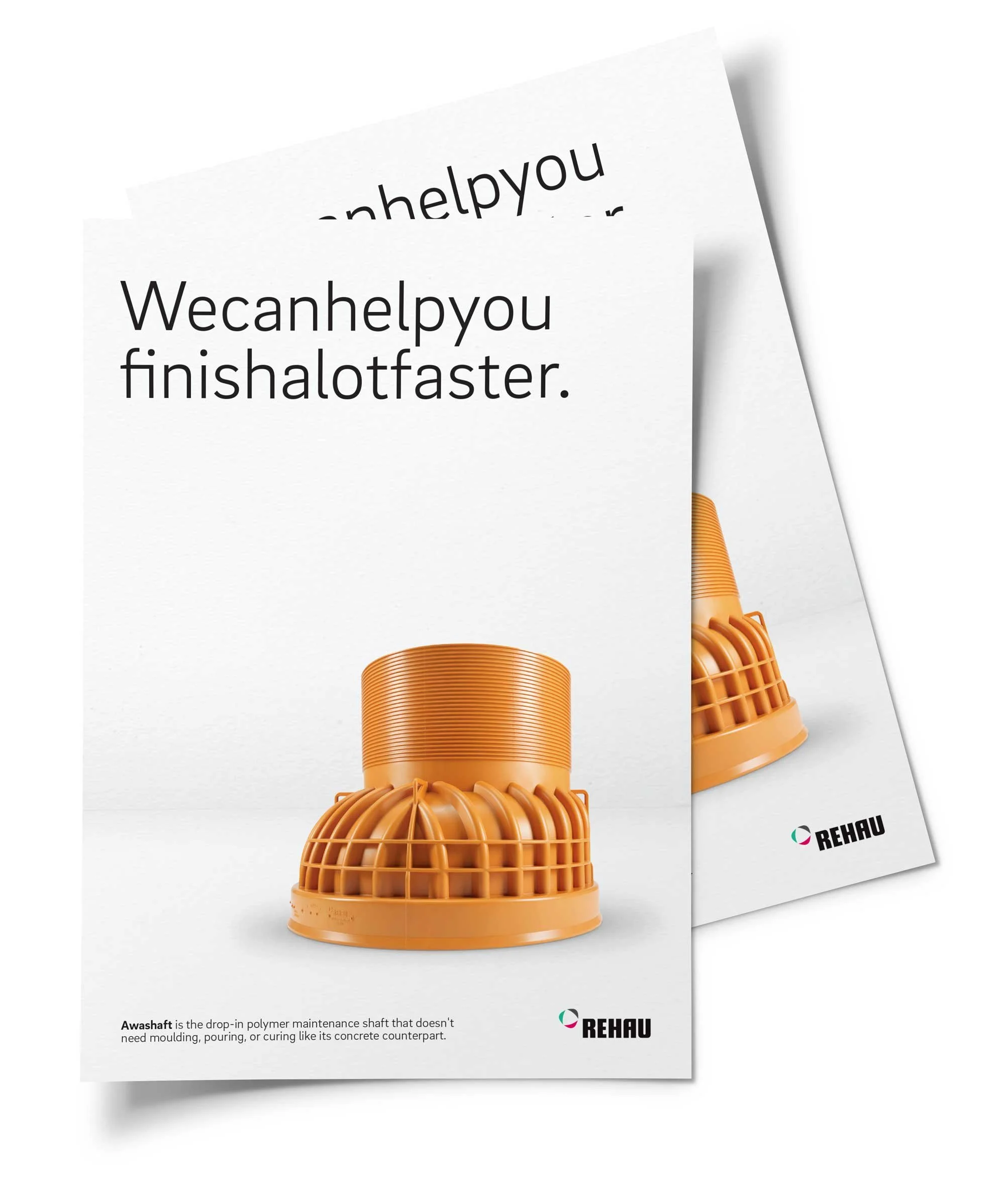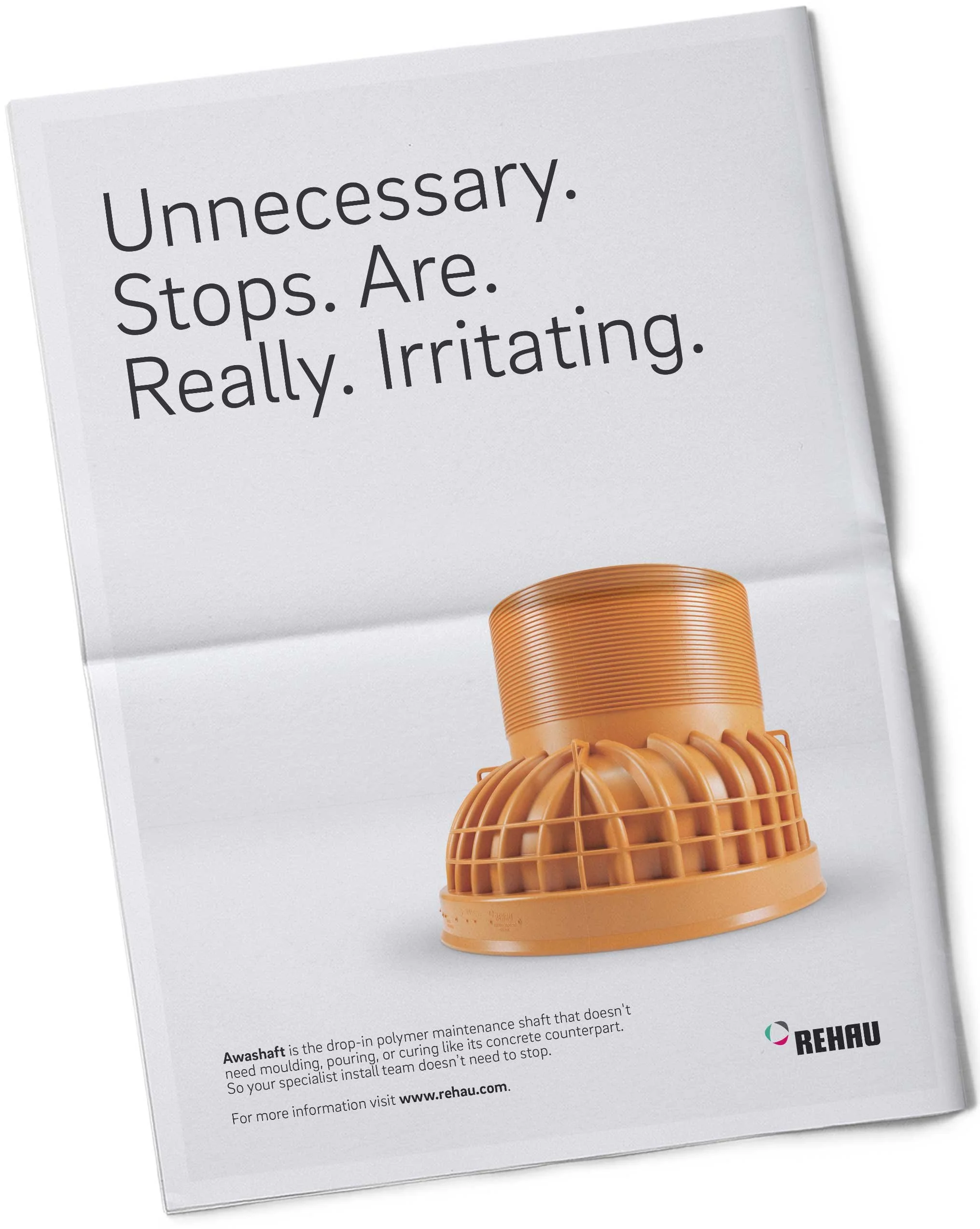 Using nothing but a packshot and some clever typesetting to demonstrate the benefits of Rehau Awashaft.